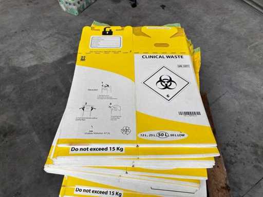 Afvalemmers, desinfectie middelen en clinical waste verpakkingen