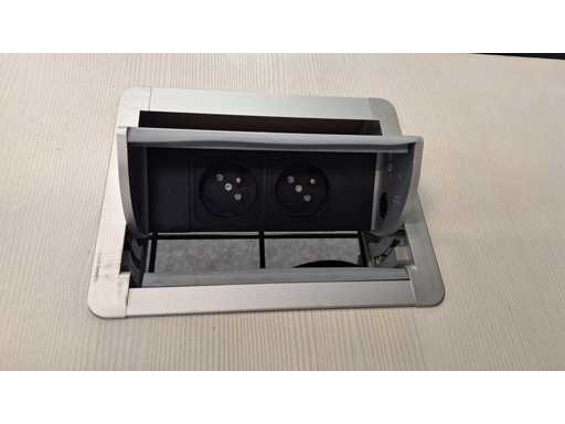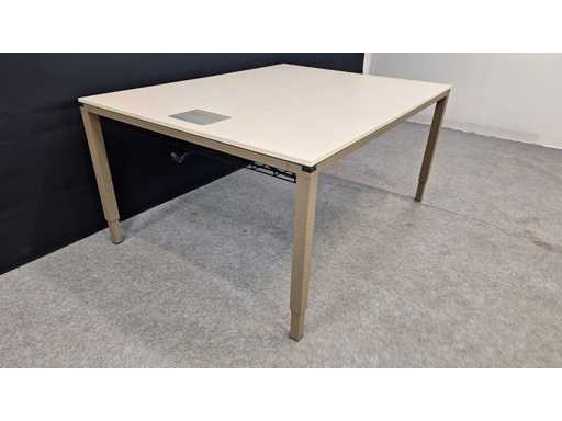 In hoogte verstelbaar onderstel kleur Antraciet, blad in melamine kleur Ahorn, voorzien van elektrificatie, goede staat, foto's indicatief