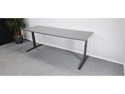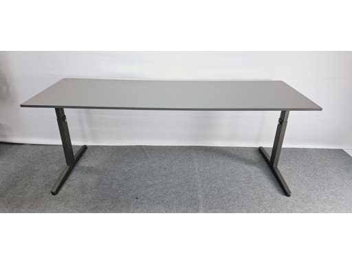 in hoogte verstelbaar (650 - 820 mm) onderstel in metaal kleur Zwart, werkblad in melamine kleur Antraciet, in zeer goede staat