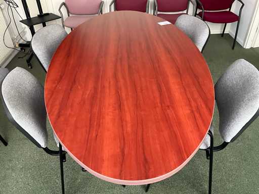 In hoogte verstelbaar; houten blad en metalen frame; inclusief 11x vergaderstoel