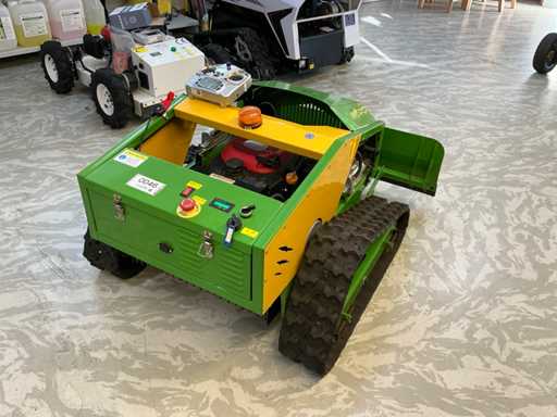 benzinemotor en 2 elektromotoren, 12V accu's, sneeuwblad, met hybride aandrijving, met radio-afstandsbediening en lader, tot 40 graden helling, maaibreedte ca. 550 mm;