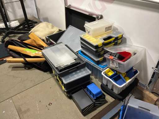 Inclusief plastiekbakken, doeken en statieven, flightcase.