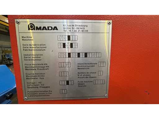 Notities: Robuuste en precieze machine, in goede algemene staat, gemaakt in Frankrijk door Amada Promecam.