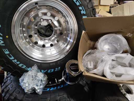 Ongebruikte set aluminium American Racing Outlaw wheels velgen inclusief centercaps en 32 wielmoeren
