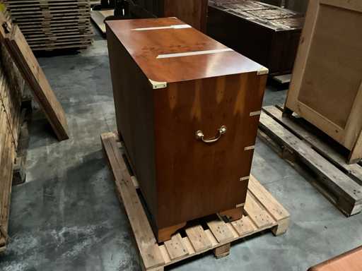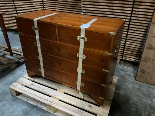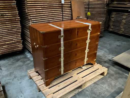 Voorzien van 5x lade, koper beslag, + houten bijzettafel afmetingen 60x100x75 cm met 1 lade