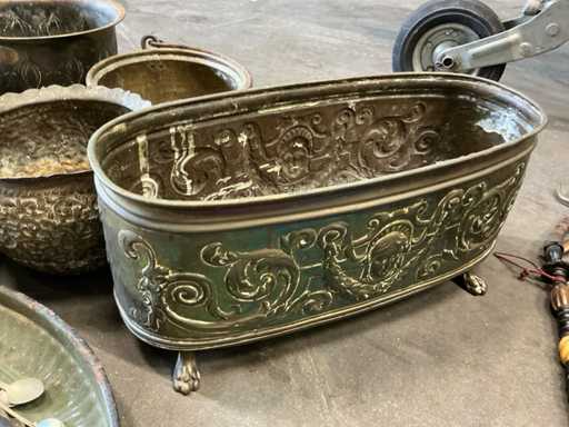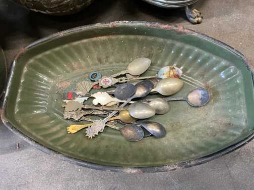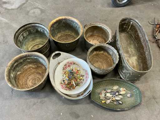 Antieke lepels, speldjes en koperen schalen