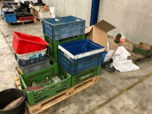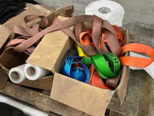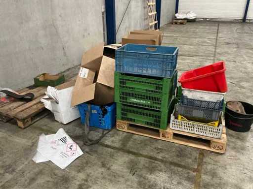 Bestaande uit ca 6 pallets met antislip matten; Folie; Kratten en divers