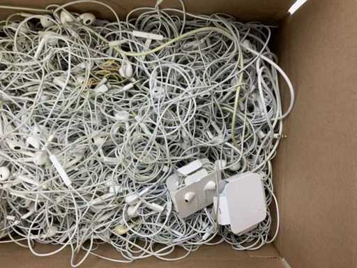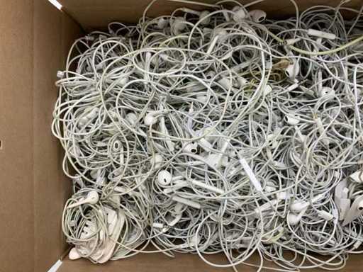 Product: Apple oordopjes (diverse modellen) | Inhoud: Doos met gemengde Apple oordopjes | Connectoren: Divers (o.a. Lightning, 3.5mm, USB-C) | Staat/Werking: Onbekend