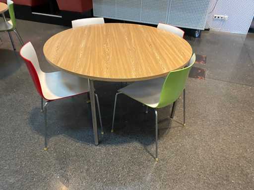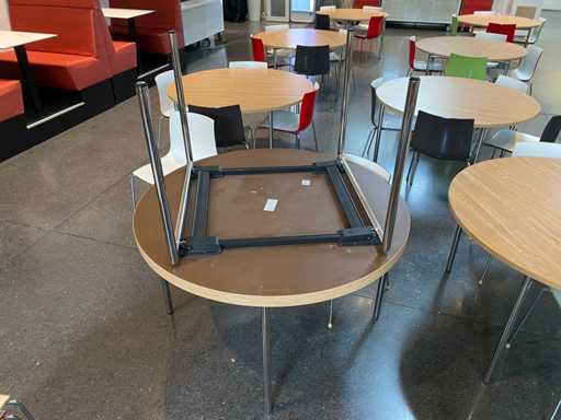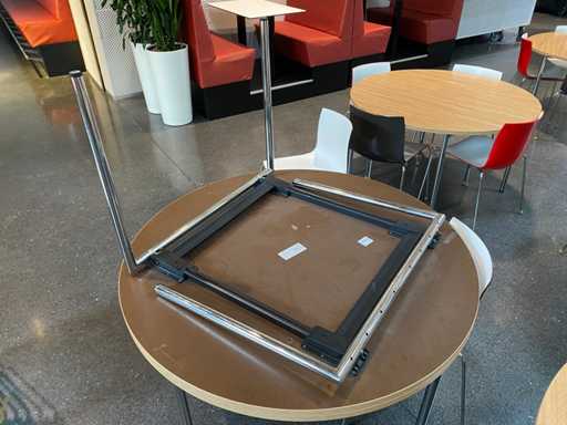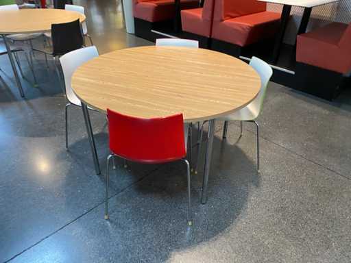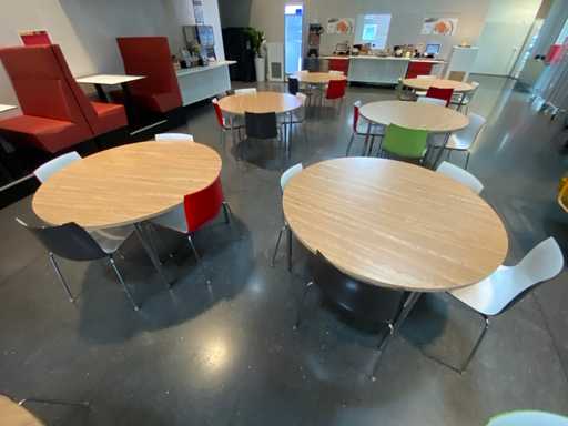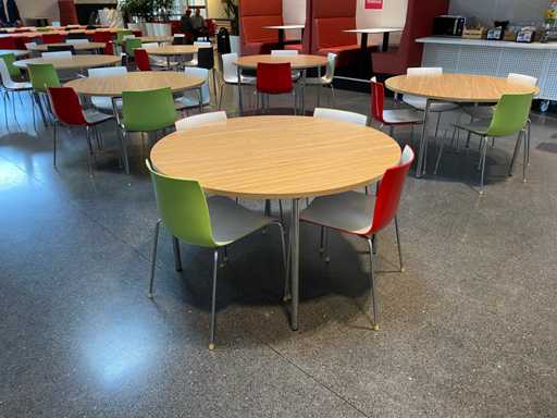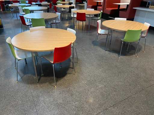 kavel bestaande uit 6x Casala ronde klaptafel. Afm. hoogte 74 cm. en diameter 130 cm. ---- 24x Arper Catifa nestelbare kuipstoel.