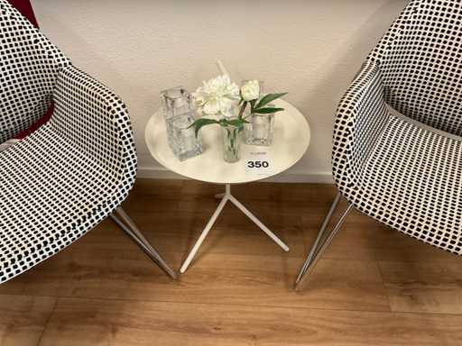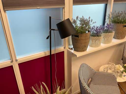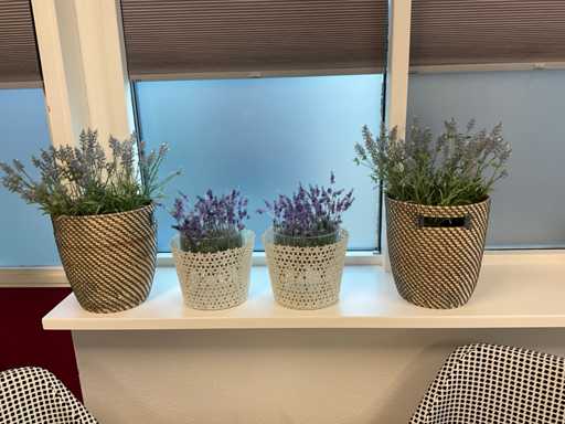 Met bijzettafeltje hoogte 50 cm, schemerlamp en 5 bloempotten met kunstplanten.