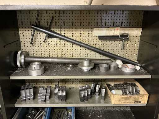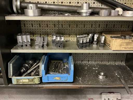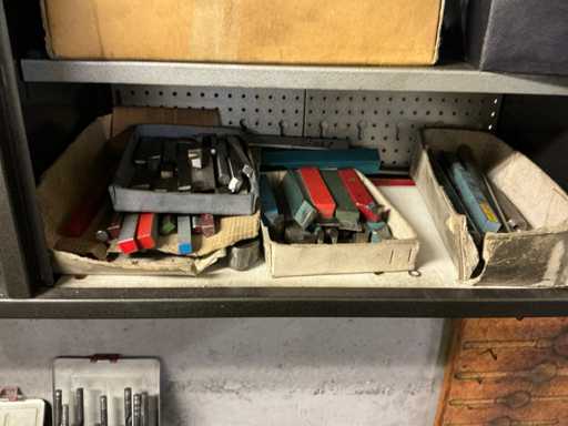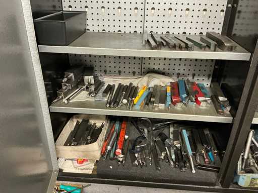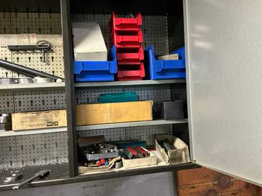 - Diverse gereedschapshouders, kleine onderdelen en klemgereedschappen in sorteerdozen