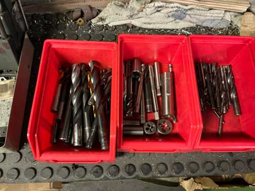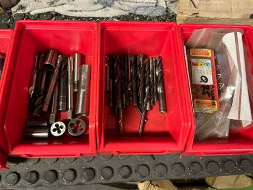 - Draaiboren, zinken, combinatiegereedschappen in rode plastic dozen