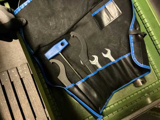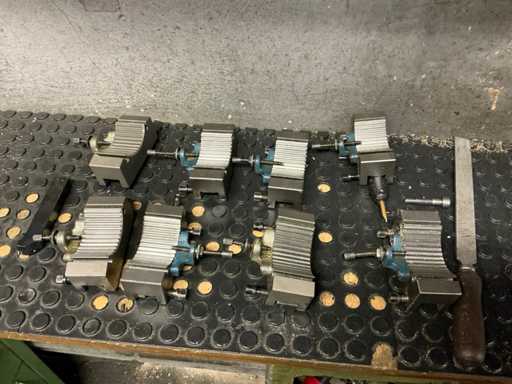 - Set klemklauwen, klembouten, moeren en steunen in houten kisten