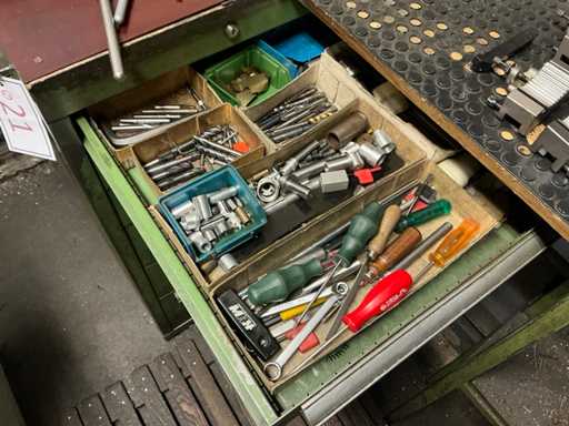 Assortiment draaigereedschap/accessoires, waaronder gereedschapsladekast