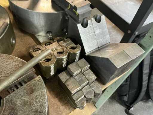 Artikel: Assortiment boorkoppen / klemhulpmiddelenUitvoering: Er waren allerlei verschillende klemapparaten en draaibankmatte