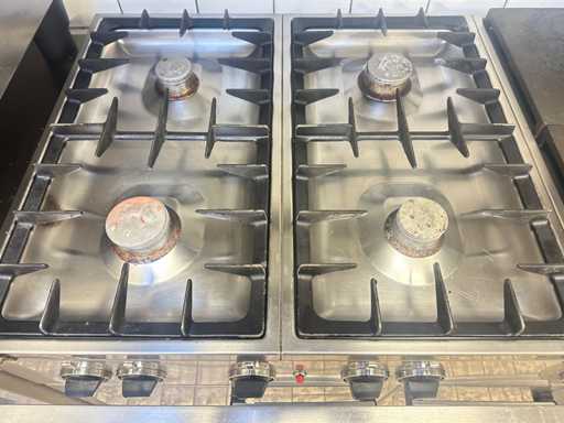 Dit fornuis is voorzien van 4 gaspitten, warmhoudplaat en oven.