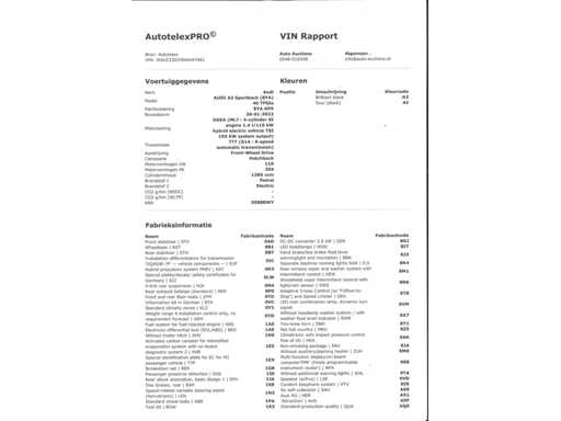 Tussen de afbeeldingen vindt u het VIN Rapport met Fabrieksinformatie en Opties en Accessoires.