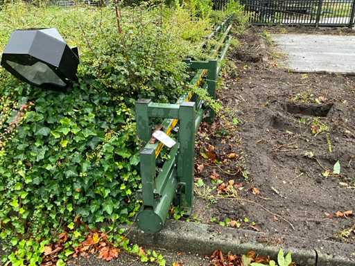 betreft omheining parkeerplaats, schuifpoort breedte 1020 cm, kavel bestaat uit buis en palen, hoeken bochten etc, Let op! Kavel dient te worden gedemonteerd