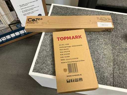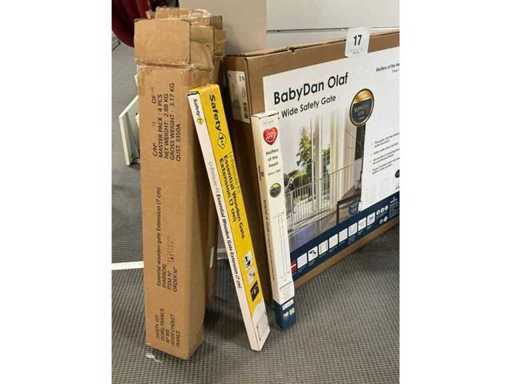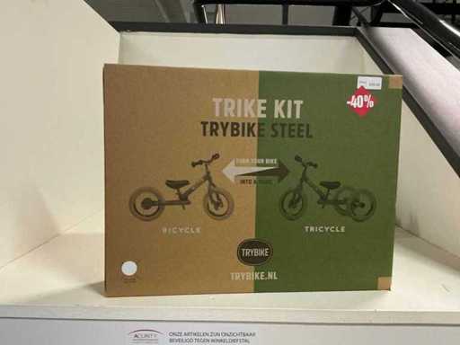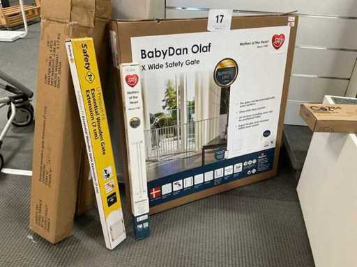 Bestaande uit veiligheidspoort Babydan, trike kit Trybike, 8x verlengstuk voor veiligheispoort, 2 diverse voorbeugels voor buggy