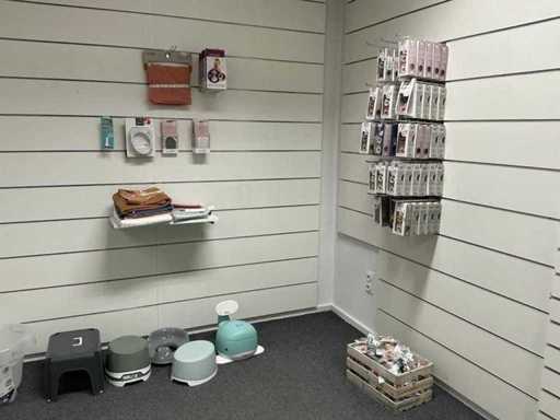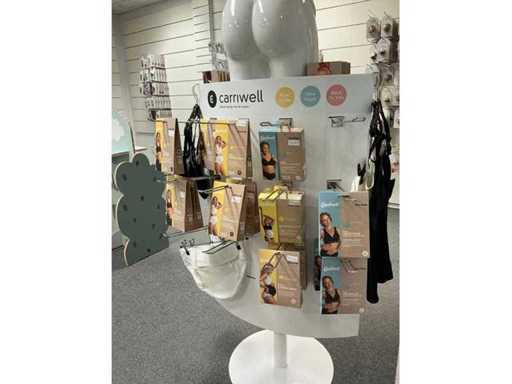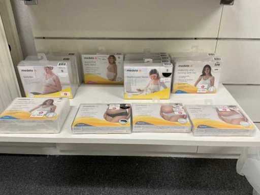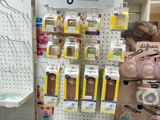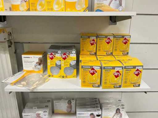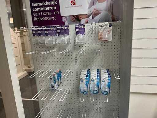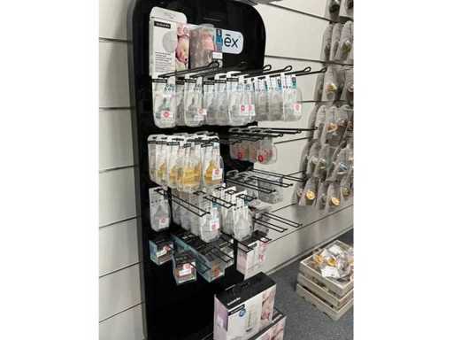 Bestaande uit fopspenen, papflessen, kolfmachine, potjes, zwangerschapsondergoed, borstschilden, afkolfsets, spenen, enzovoort waaronder Difrax, Philips advent, Carriwell, Frigg, Medela,… compleet met 6 diverse displays