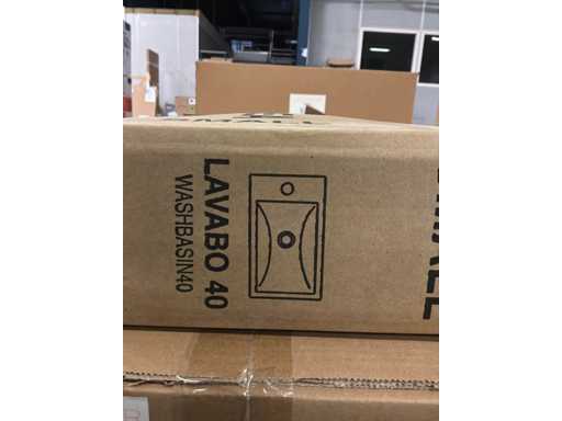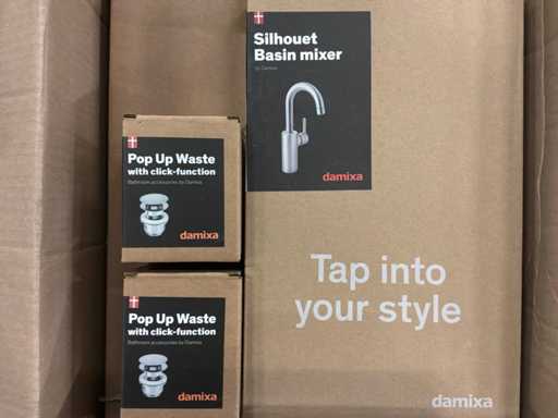 Bestaande uit verschillende wastafels, kranen en accessoires en een elektrische verwarming.