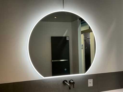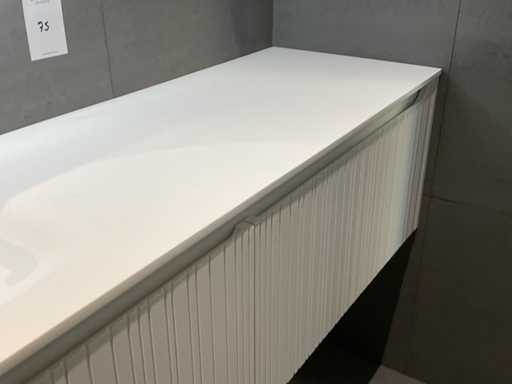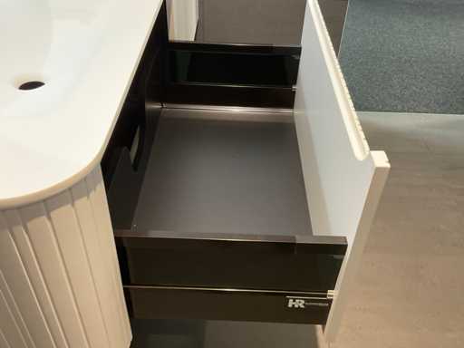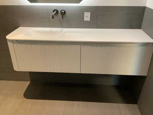 v.v. onderkast met 2 laden; kleur mat wit; kunststeen wastafelblad; mat wit; incl. spiegel met geïntegreerde verlichting; afmeting circa 100x90 cm
