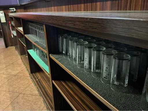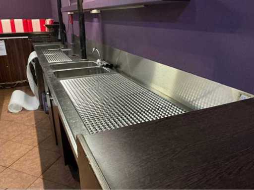 Metingen verwijzen naar baardtellers. Natte ruimteafmetingen: 490 cm L x 73 cm B x 97 cm H. Afmetingen wastafel: 390 cm L x 70 cm B.