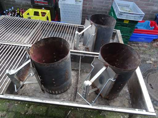 met 3x starter, 3 roosterdelen ontbreken, poten afneembaar, afmeting: 82x113x39cm (hxbxd)