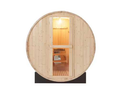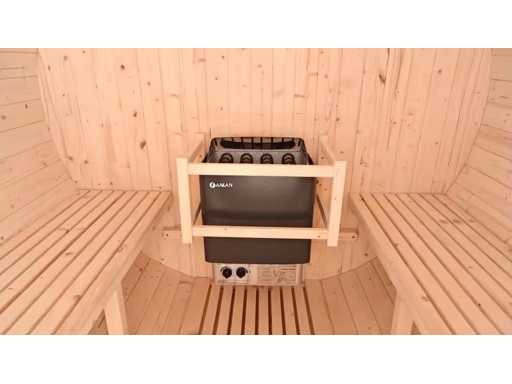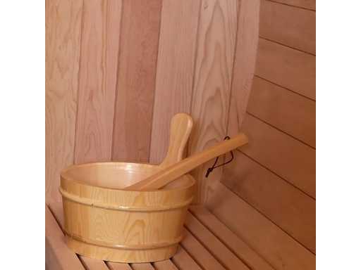 2-4 persoons sauna, inclusief dakbedekking, 4500 Watt, 220 Volt aansluiting, 4,5 Kw interne kachel bediening, explosiebestendig licht, 8 mm transparant gehard glas, houten emmer + schep, ongebruikt in doos. Afmeting kist : 200 x 110 x 82 cm. Gewicht : 300 Kg.