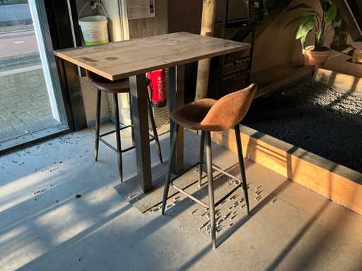 Met 4 stuks zitkruk met skyleder bekleed kleur bruin