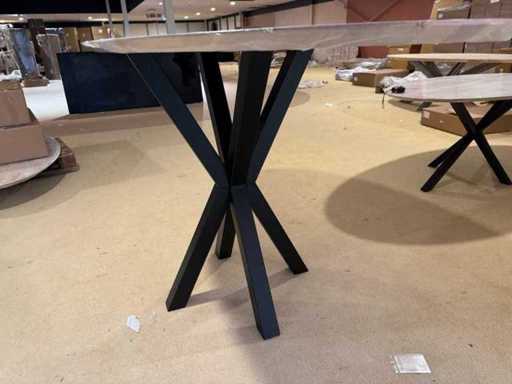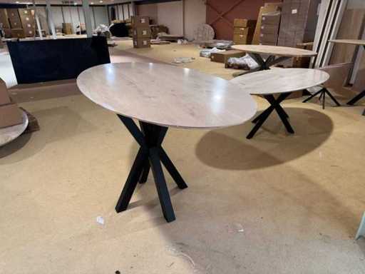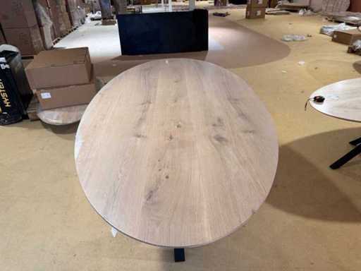 Bartafel - naturel massief eiken - zwart metalen spinpoot