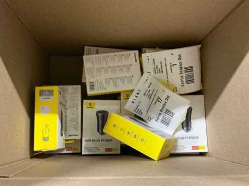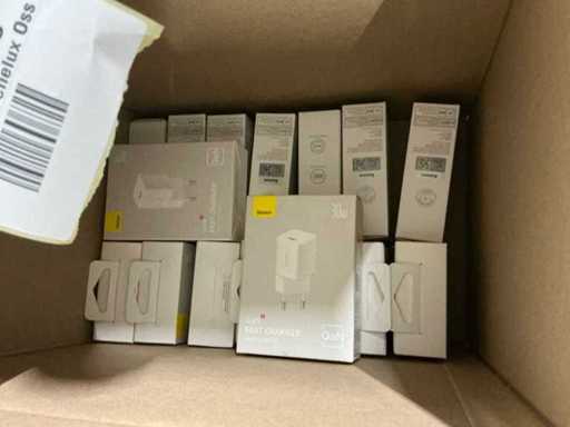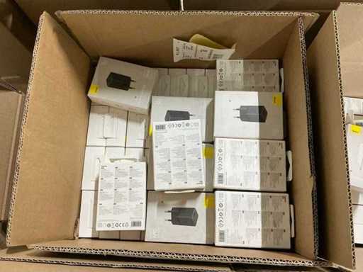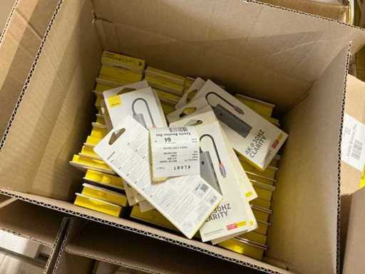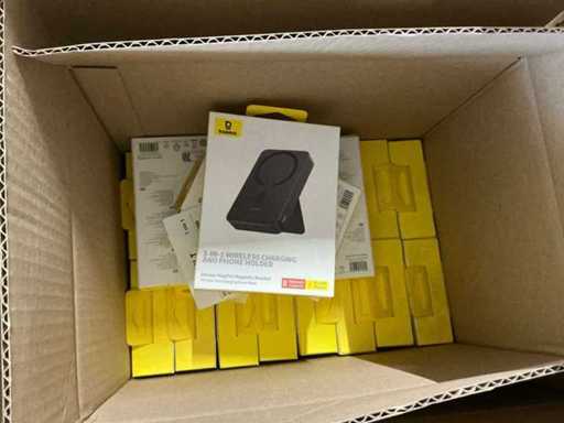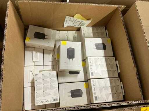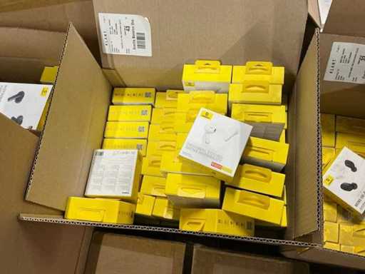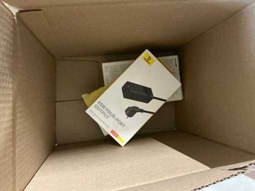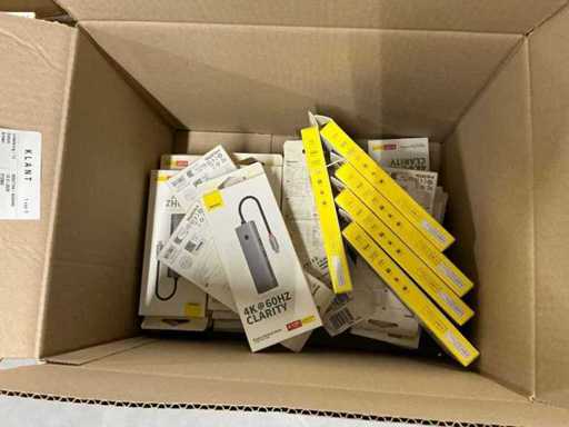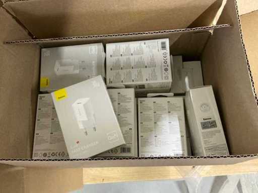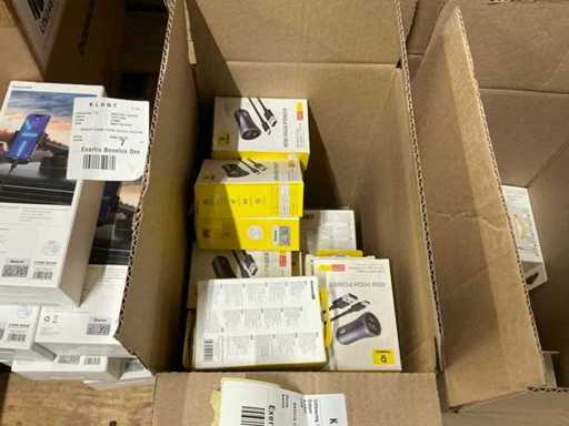 Bestaande uit 6 pallets met diverse artikelen waaronder: GAN5 CHARGER USB-C 30W WHITE, M2 TWS EARPHONES WHITE, M3 TWS EARPHONES WHITE, 4 PORT USB HUB, GAN5 CHARGER USB-C 30W BLACK, B1 OUTDOOR CAMERA 2K WHITE, GAN6 CHARGER 4 PORTS 65W BLACK, MA20 TWS EARPHONES BLACK, 5 PORT USB HUB, E13 TWS EARPHONES BLACK, M2 TWS EARPHONES BLACK, PHONE HOLDER CHARGING 15W OUTLET, 7 PORT USB HUB, WM02 TWS EARPHONES WHITE, WIRELESS CHARGER USB-C 1M, GAN5 CHARGER 2 PORTS USB-C 140W, WM02 TWS EARPHONES BLACK, GAN3 CHARGER 4 PORTS 65W, E13 TWS EARPHONES WHITE, WM01 TWS EARPHONES WHITE, GAN5 CHARGER USB-C 20W BLACK, GAN5 CHARGER USB-C 20W WHITE, WM01 TWS EARPHONES PINK, WIRELESS CHARGER 15W WHITE, POWER BANK 5000MAH 20W, POWER BANK 12000MAH 65W SILVER, WM01 TWS EARPHONES BLACK, RETRACTABLE CHARGE CABLE 3IN1 66W, CAR CHARGER 40W 2 OUT + CABLE, GAN3 POWER STRIP 5 PORT 65W, DESKTOP PHONE STAND, GOLD FAST CH CAB USB-MLC 3.5A BK, GOLD FAST CH CABLE USB-C 240W BK, WIRELESS MOUSE TRI MODE, CAR CHARGER 40W 2 OUT, POWER BANK 10000MAH 30W, GOLD FAST CH CABLE USB-C 240W BK, CLAMP PHONE HOLDER SUCTION, WIRELESS KEYBOARD TRI MOD, CAR CHARGER 60W 2 OUT, CAR CHARGER 65W 3 OUT