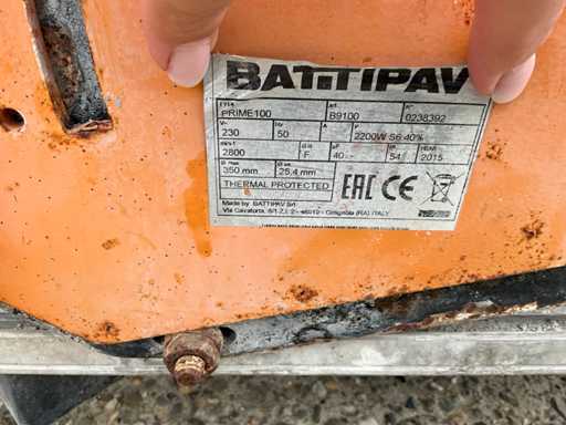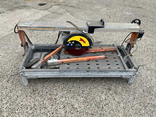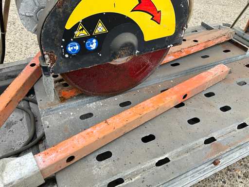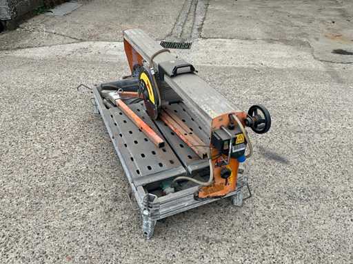 Professionele Battipav PRIME 100 steenzaagmachine, geschikt voor het zagen van tegels, natuursteen, betonblokken en andere bouwmaterialen. De machine is voorzien van een krachtige 2200 W motor (230 V) en kan zaagbladen tot Ø 350 mm opnemen. Dankzij de geïntegreerde waterkoeling en solide werktafel is nauwkeurig en stofarm werken mogelijk - werkende staat - Inclusief gemonteerd zaagblad.