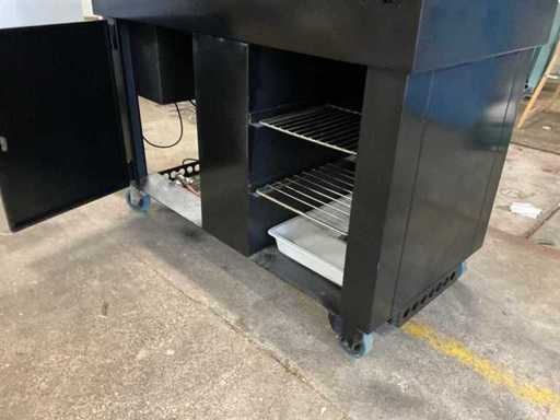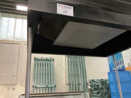 zeer goed werkende BBQ kan zowel met als zonder de bovenbouw worden gebruikt, Afzuigkap gemakkelijk demonteerbaar ( ook voor transport). Krachtige nieuwe afzuigmotor. Kan worden verbonden met flexibele buis voor afvoer rookgassen ( in binnenruimtes) Feestjes tot 100 personen is geen probleem. Vorige zomer meerder feesten verzorgd. kan worden verhuurd voor 150 tot 200 euro per dag