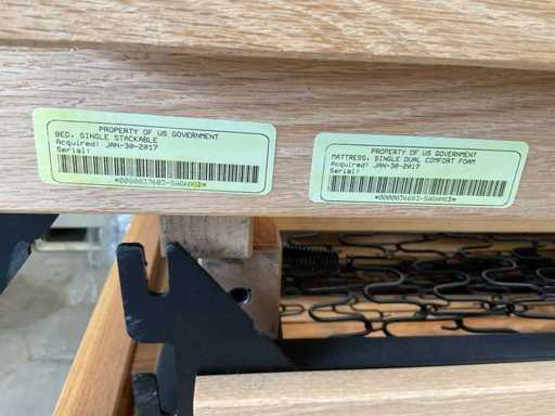 Op pallet; kunnen ook als stapelbed; geen bevestigings pennen;
