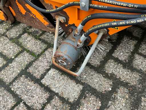 3-punt hef, Hydraulisch aangedreven borstel, hydraulisch kiepende opvangbak, opvangbak met schade