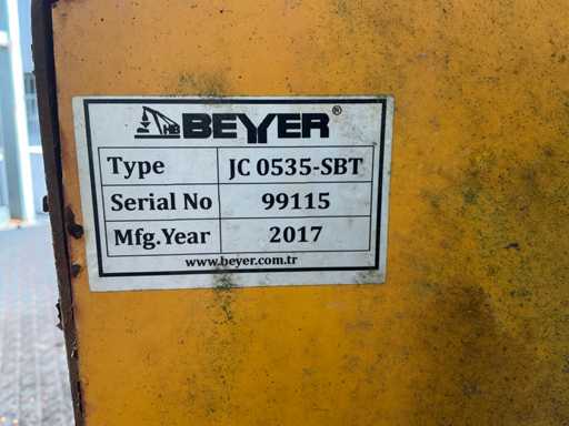 Voorzien van: Model Beyer JC 0535-SBT, Capaciteit ≈ 500 kg ingang; ca. 15–30 t/u output,), Frame & kaken stalen frame; mangaanstaal slijtkaken.Motor: 21 kw elektrisch