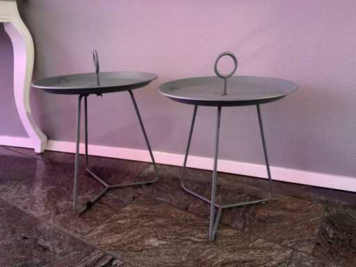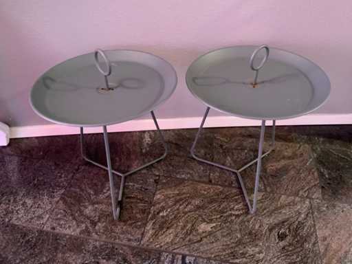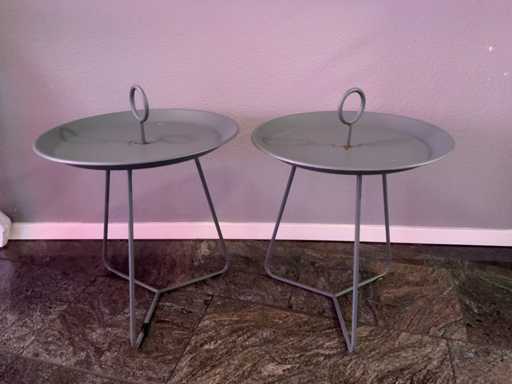 Voorzien van driepotig onderstel. Diameter tafel: 44 cm.