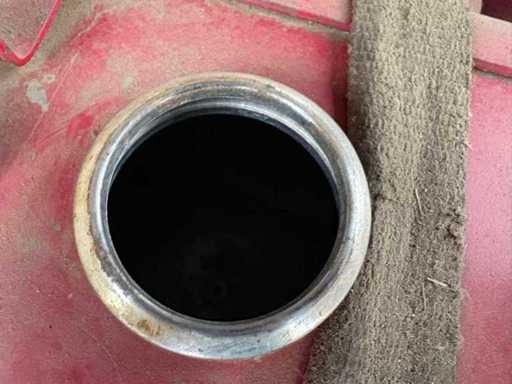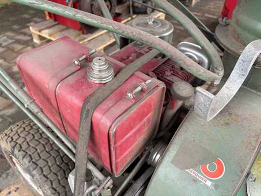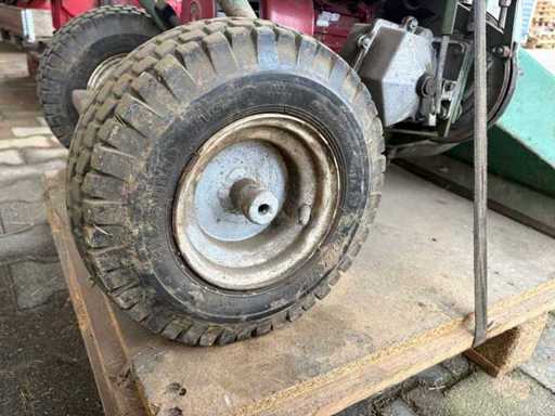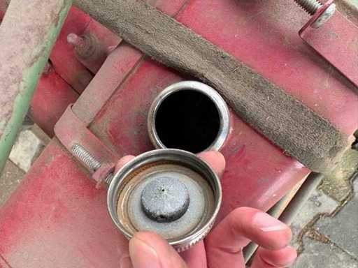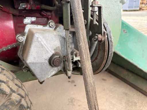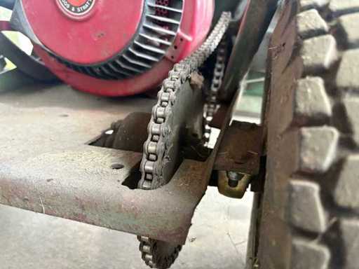Gebruikte tuinmachine van vorige eigenaar. Het apparaat vertoont tekenen van slijtage door ouderdom en gebruik, waaronder vuil, corrosie, afbladdering van de lak en slijtage aan het chassis, de behuizing en de slang.