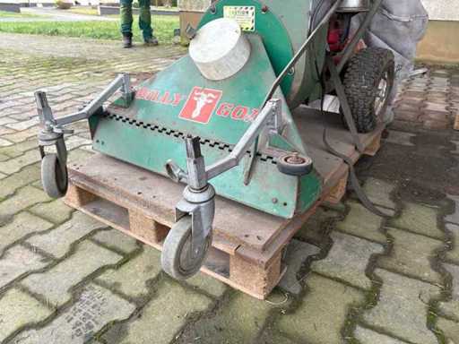 Een mobiele blad- of tuinstofzuiger van de fabrikant Billy Goat wordt aangeboden. Het apparaat is uitgerust met een benzinemotor en heeft een zuigkanaal met een flexibele slang en een textielverzamelcontainer.