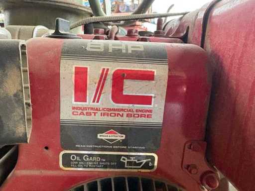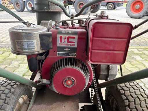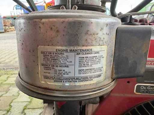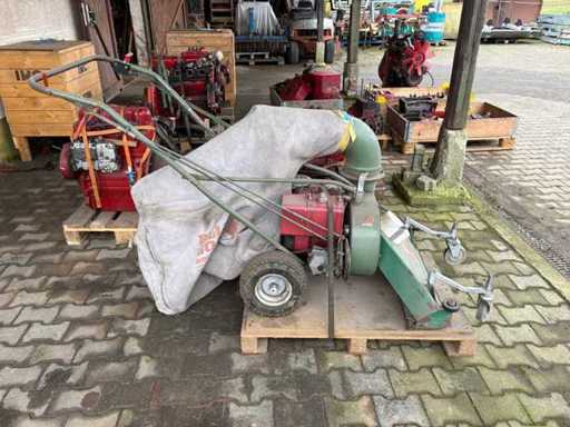 De aandrijving wordt verzorgd door een Briggs & Stratton industriële motor met een vermogen van ongeveer 8 pk (gespecificeerd volgens de motoraanduiding). Het apparaat is bedoeld voor gebruik in de tuin, het landschap of het gemeentelijke gebied, bijvoorbeeld voor het vacuümzuigen van bladeren, snoeisels of licht organisch materiaal.