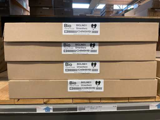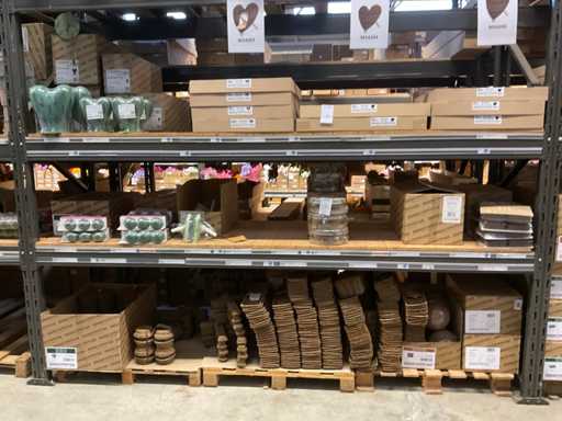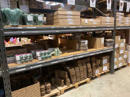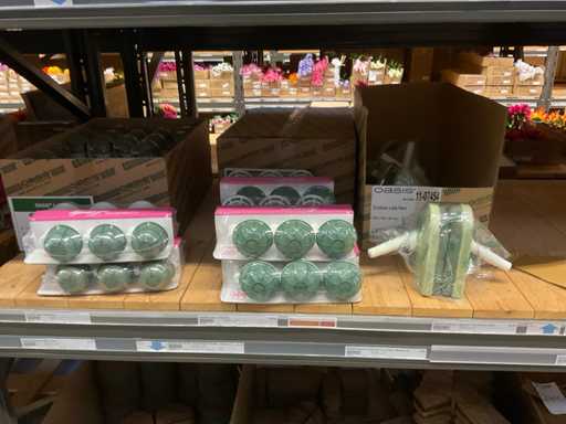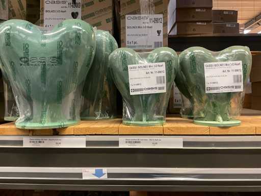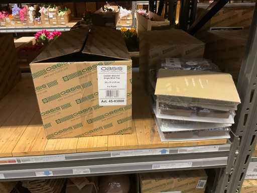 Verschillende vormen oasis, inhoud van 2 schappen en 3 pallets, inclusief pallet, exclusief stelling.