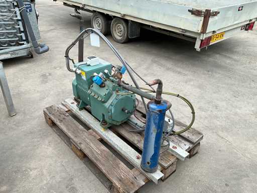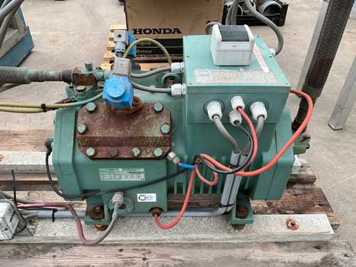 Voorzien van zuigercompressor; “Henry” S-5188-CE oliescheider; “Johnson Controls” drukschakelaars; aansluitingen voor verdamper en condensor; “Danfoss MP beveiliging voor oliedruk; aansluiting 380–420 V - 3-fase; 50 Hz; Max. druk: 28 bar