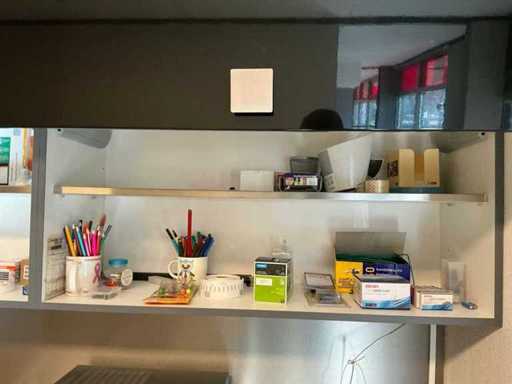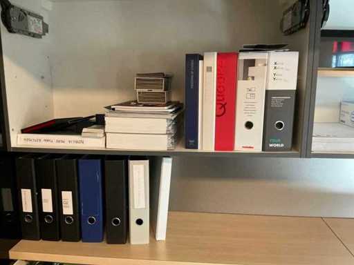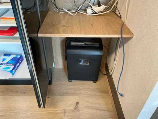 Met inhoud bestaande uit Philips Digital Cinema Sound System, papierversnipperaar, kantoorgerief en foldermateriaal. Dit kavel dient volledig meegenomen te worden.