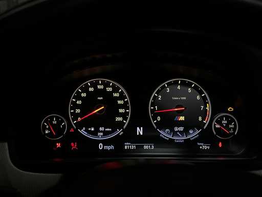 Opties: M Rear spoiler Glass roof, electrical Climate-controlled seats, front Active seat for driver and passenger Seat heating driver/passenger Seat heating, rear M multifunction seat Autom. climate control with 4-zone ctrl Ambient interior light Head-up display Headlight cleaning system Park Distance Control (PDC) Xenon Light Adaptive Headlights Lane departure warning Lane change warning Surround View Steering wheel column adjustment,electr. Steering wheel heater automatic trunk lid mechanism Soft-Close-Automatic doors Reversing camera Etc