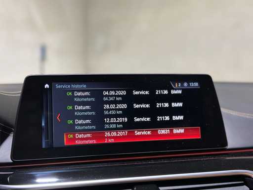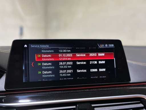 Opties: Interieur & Comfort • BMW Individual vollederen interieur Caramel • Comfortstoelen met memory • Stoelverwarming voor en achter • Massagefunctie voor bestuurder en passagier • Elektrisch glazen schuif-/kanteldak • Entertainment systeem achter • Zonneschermen achter • Comfort Access pakket • Bowers & Wilkins audiosysteem • TV-functie • Head-up display • DAB-tuner • Telephony met draadloos laden • Stuurwielverwarming • Ambient interieurverlichting