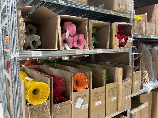 Inhoud 2 zijde stelling bestaande uit boekethouders in diverse kleuren en formaten, exclusief stellingen.
