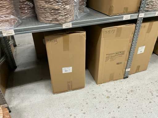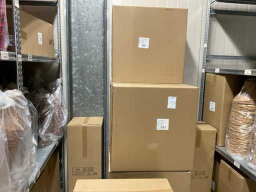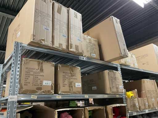 Let op kavels liggen op 1ste verdieping, enkel met trap bereikbaar, goederen met lift max 400 kilo of per pallet met vorkheftruck naar beneden te halen.