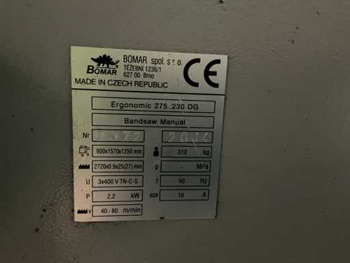 Bomar ergonomische 275.230 DG semi-automatische bandzaag