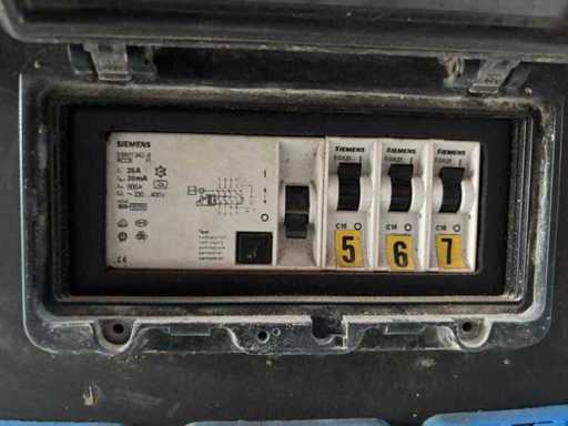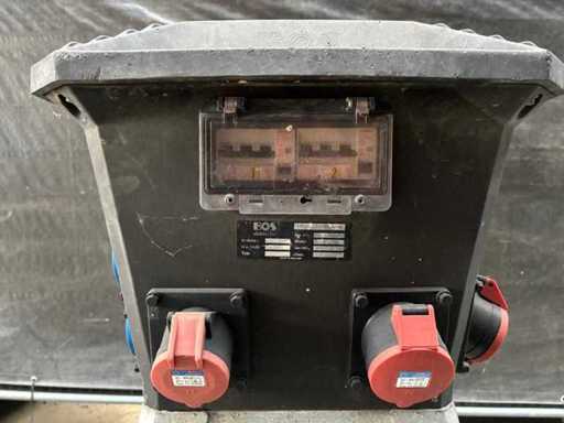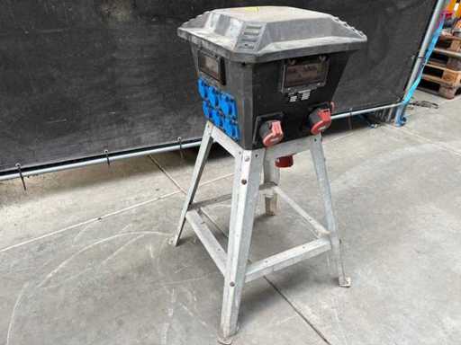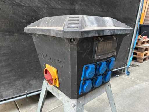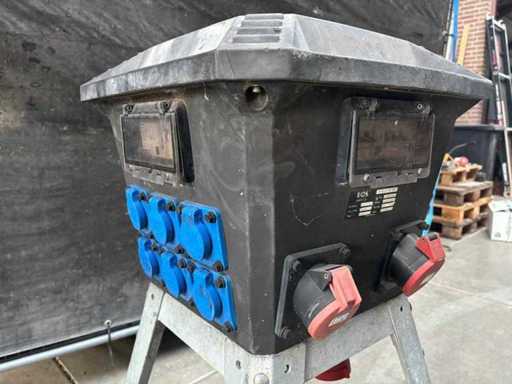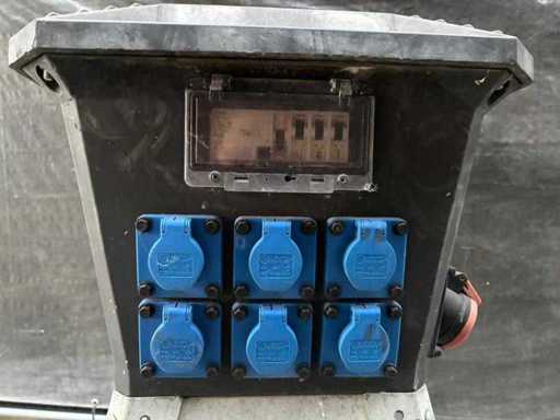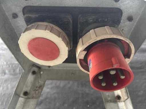 380 volt /32Amp: 1 keer 4 polige aansluiting, 3 keer 5 polige aansluiting